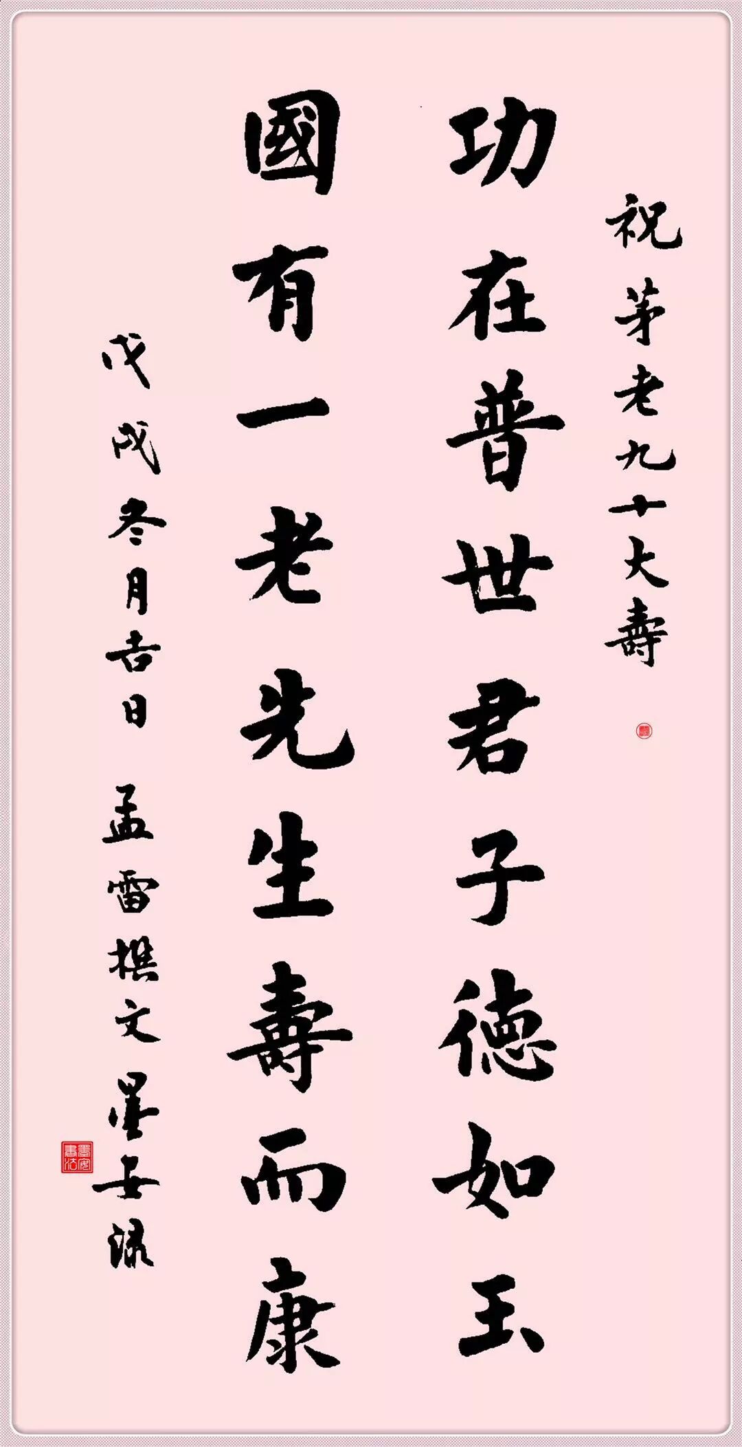 功在普世,君子德如玉;国有一老,先生寿而康。