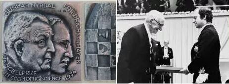▴ 瑞典国王为哈耶克颁奖,同台领奖的乌托邦主义者缪达尔,质疑哈耶克的获奖资格(点击欣赏音乐相册《乌托邦的掘墓人》)