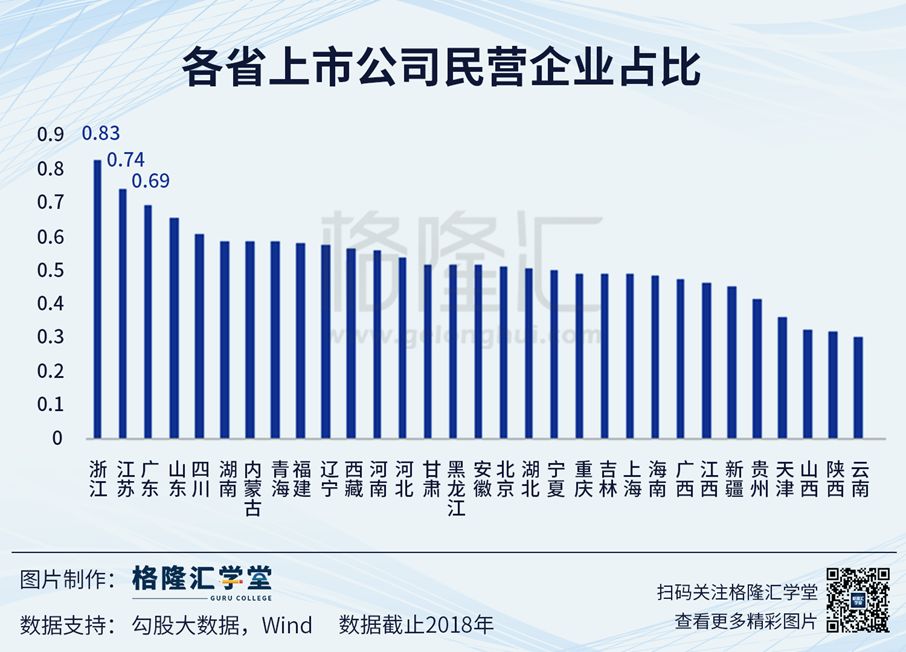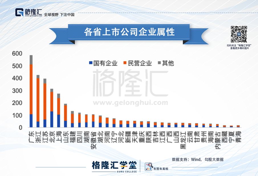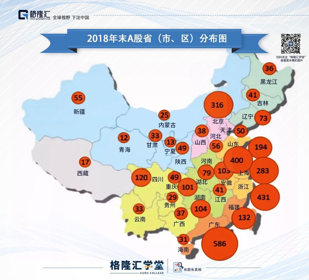 截止2018年年末,沪深交易所A股上市公司总数共3567家,东北、西北明显"寒碜",而东南明显富裕,广东、浙江和江苏堪称豪门,广东以586家的总数排名第一,浙江431家、江苏400家分居第二和第三,北京、上海和山东分别为316家、283家和194家跟随其后,这些上市公司正是地区经济实力的核心所在,也是他们各自多年积攒下来的家底。