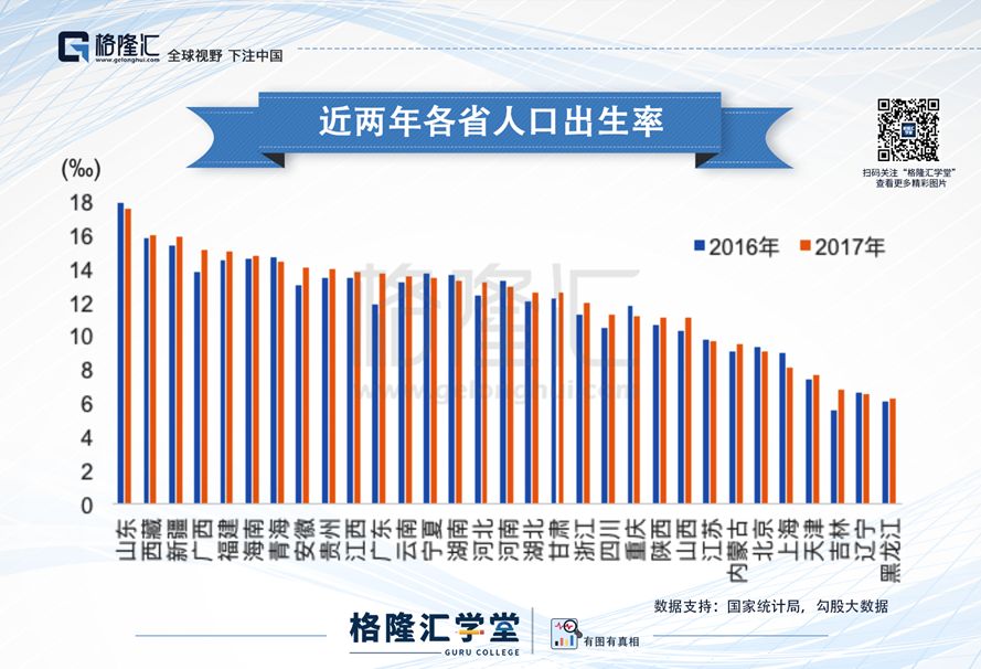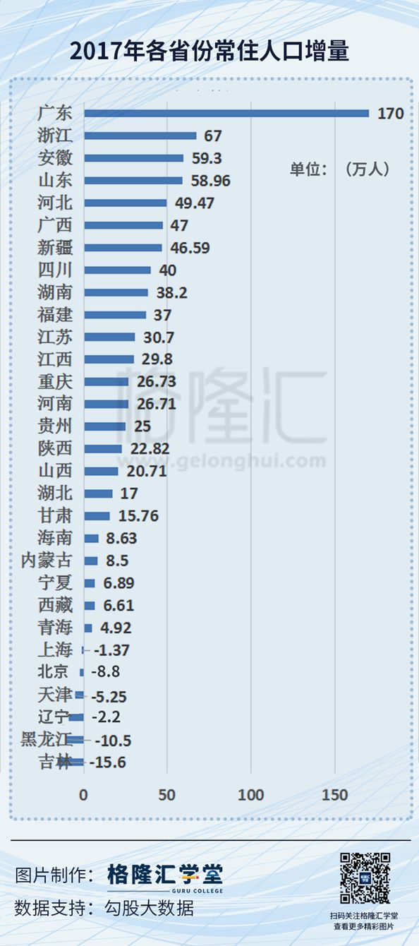 常住人口净增加,有外来人口迁徙流入的功劳,也会有本地人生育的原因。结合各省出生率数据,我们不难做一个八九不离十的归因分析(见下图):