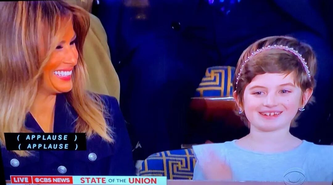 下面一个客人来自另一个弱势群体,儿童。一位10岁的小朋友格蕾丝·艾琳(Grace Eline)坐在第一夫人身边。从4岁开始,小格蕾丝每年过生日都要求自己的朋友向圣·犹达儿童研究医院(St. Jude Children's Research Hospital)捐献。她不曾想有一天她自己患了脑癌。她顽强地挺过一次次化疗,还为治疗癌症的研究募捐4万多美元。今晚,川普总统告诉格蕾丝,她激励着所有的人。川普政府将提请国会在今后10年中拨款5亿美元经费,专门用于儿童癌症的研究,并号召所有美国人和他一起向儿童癌症宣战。