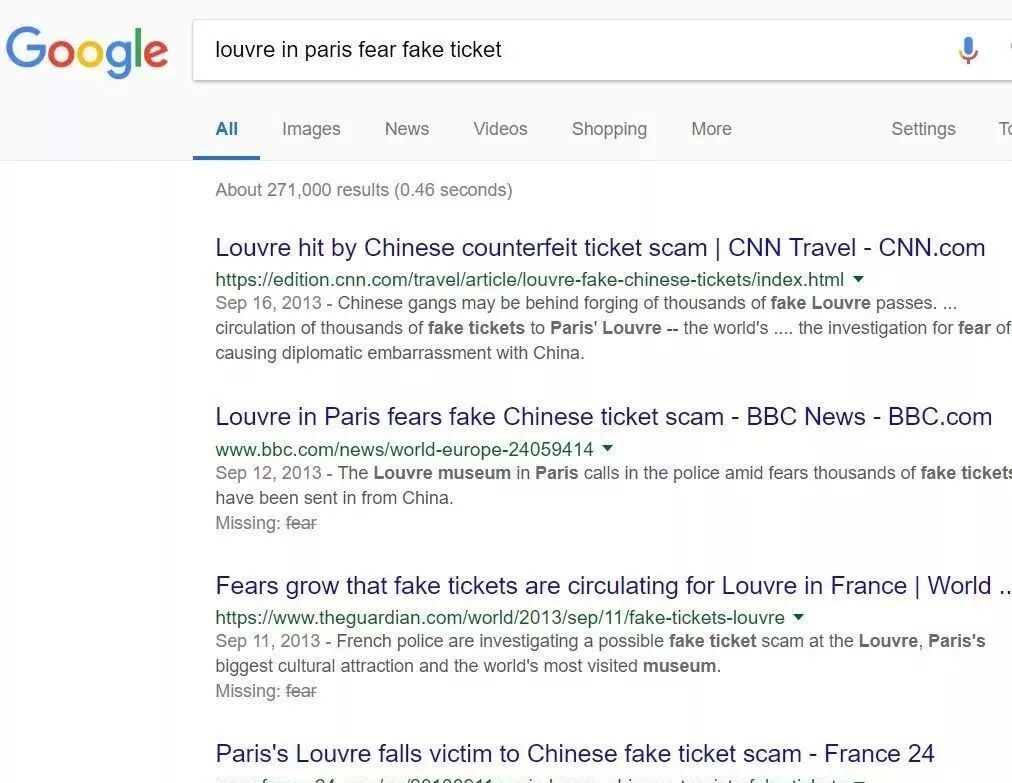 只需在谷歌输入关键字"巴黎卢浮宫-仿制票",