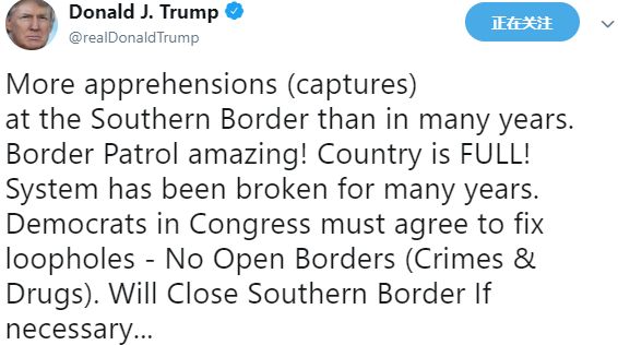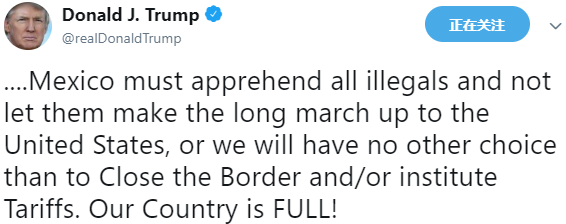 (续上)墨西哥必须逮捕所有非法移民,不要让他们通过漫长跋涉来到美国。否则,我们只能关闭边境和/或征收关税,我们别无选择,美国满了!