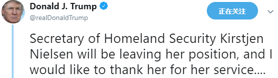 国土安全部部长Kirstjen Nielsen将要离职,我要感谢她的贡献(未完待续)