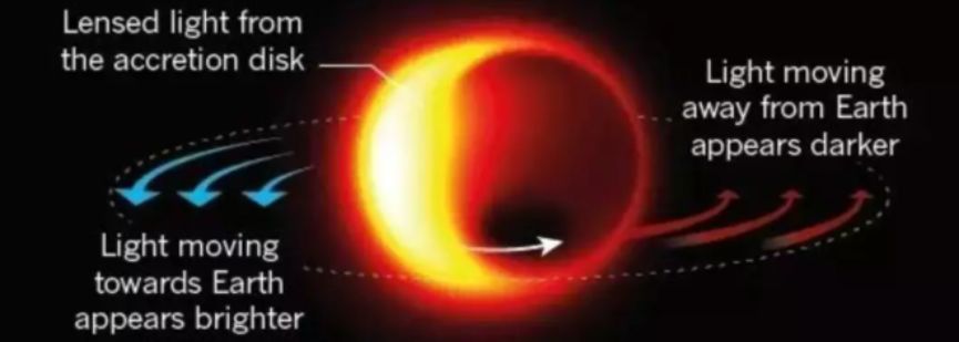 发布的图片显示了黑洞转动产生的多普勒效应。