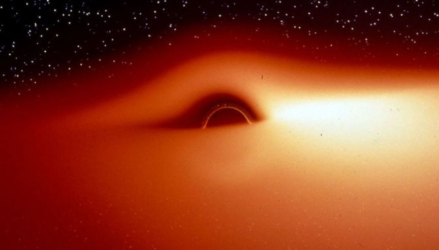 吸积盘是黑洞的光环,这个明亮的环中间漆黑一片,听起来并不像土星光环那样和谐美丽。而且如果我们去观察吸积盘,会发现它被扭曲了。这是因为黑洞对光线有很强的弯折能力,位于黑洞背面的吸积盘发出的光,也会绕到前面来被我们看到。