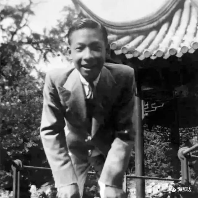 贝聿铭在这园中,还曾经留下一张翩翩少年照。
