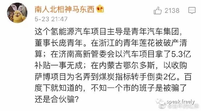 我看着俩灵道兴致勃勃观看水氢发动机工作演示的现场照,内心那叫一个五味杂陈,真的不知道是笑好还是哭好。白花花的40亿大元,补贴给农民,不知能让多少家庭奔小康,补贴给教育,不知能让多少孩子成长为栋梁,补贴给医疗,不知能让多少病不起的人重返健康,但在南阳灵道一蠢间,愣是贴给了自称能造水氢发动机的骗子。