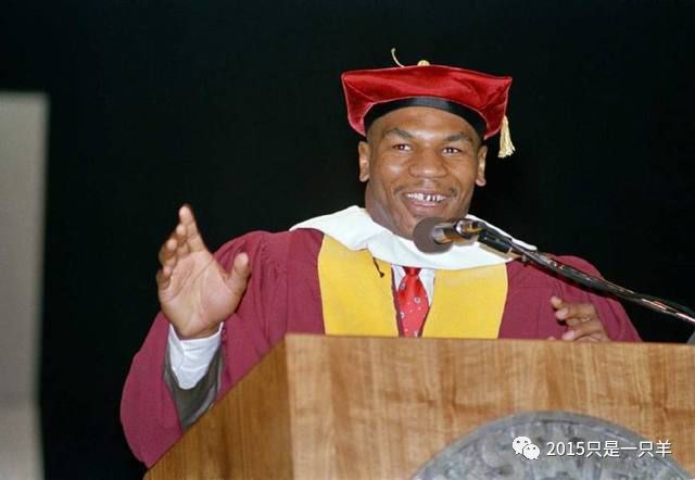 最具喜感的是泰森,这位小学没毕业、字母识不了一箩筐的拳王,被威伯福斯中央州立大学授予博士学位,拳王受邀上台本想讲一段励志故事,结果看着讲稿结结巴巴读不下去,暴躁的拳王把稿子扔到一边,干脆脱稿演讲,最后演讲成了粗话和荤段子的集合体,但泰森的真实成长经历却赢得了学生们的高声喝彩,老师们则憋成内伤不敢笑出声……我认为泰森不算丢人,甚至挺认可他:这学位是学校给他的,不是他花钱买的,泰森穿上学位服虽然也颇有"沐猴而冠"的搞笑效果,但泰森不在人前吹嘘自己学富五车,更不会去背书单、掉书袋、装两脚书柜,泰森说:我哥哥的工作是让人头脑清醒(脑科医生),而我的工作却是让人头脑昏迷,和哥哥相比,我觉得自己就是个下流胚子……