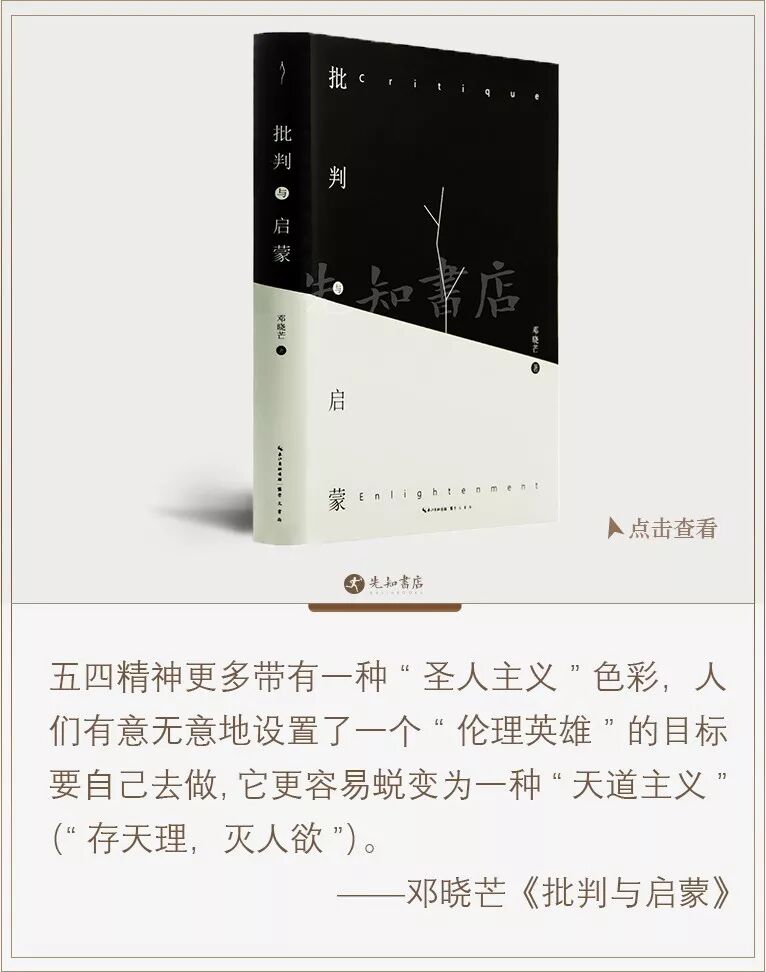 邓晓芒在纪念五四100周年的新书《批判与启蒙》中写道: