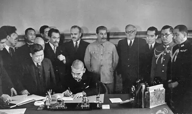 1941年4月13日,苏联和日本签订《苏日互不侵犯条约》,双方还发表声明:"苏联保证尊重满洲国的领土完整和不可侵犯,苏方代表莫洛托夫在条约上签字,日本保证尊重蒙古人民共和国的领土完整和不可侵犯。这是对侵中国内政的公然侵犯。
