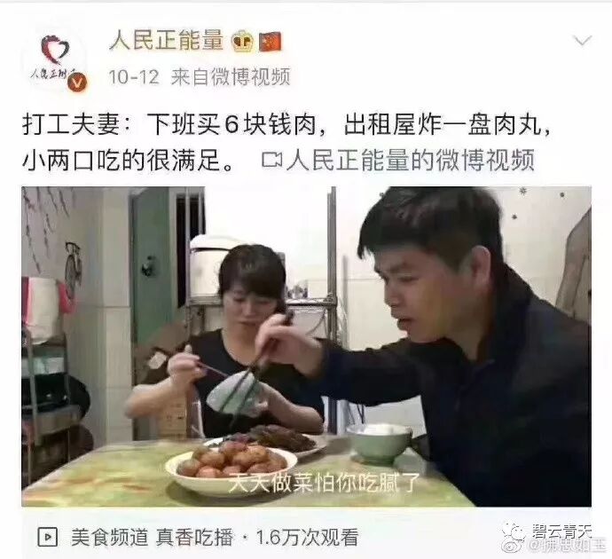 丫烧掉稅民大笔银子研究出的理论依据竟然是go源自中文的“狗”,因为狗的特点是虽然脖子上拴着狗绳,但永远欢蹦乱跳拉着主人往前跑,这就有前行、去的感觉,也就是go。而yellow,谐音是中文的叶落,叶子黄了才会落,所以,yellow也来自中文。以此类推,英文就成了剽窃中文的产物。看到这里,只要脑子没坏,是人都会笑到腹部陡现六块肌肉。但正能人群却真心为此自豪到热泪盈眶,譬如上面我那前微友。现场的砖家教授当然也一脸自豪热泪盈眶,但丫一脸自豪的原因是又成功上下忽悠了一圈,捞到了不少经费,蒙来了不少荣誉,热泪盈眶的原因是太过欣赏自己的聪明,无可救药爱上了自己。有人说,骗子最爱和脑残谈正能量,此言信矣。再譬如今天看圈发现的一条正能信息,说打工夫妇下班买6块钱肉,出租屋炸一盘肉丸,小两口吃的很满足。一派知足常乐、岁月静好的正能有木有?是不是让那些整天嫌肉贵喊吃不起肉、嫌工资低喊日子苦的人很惭愧?