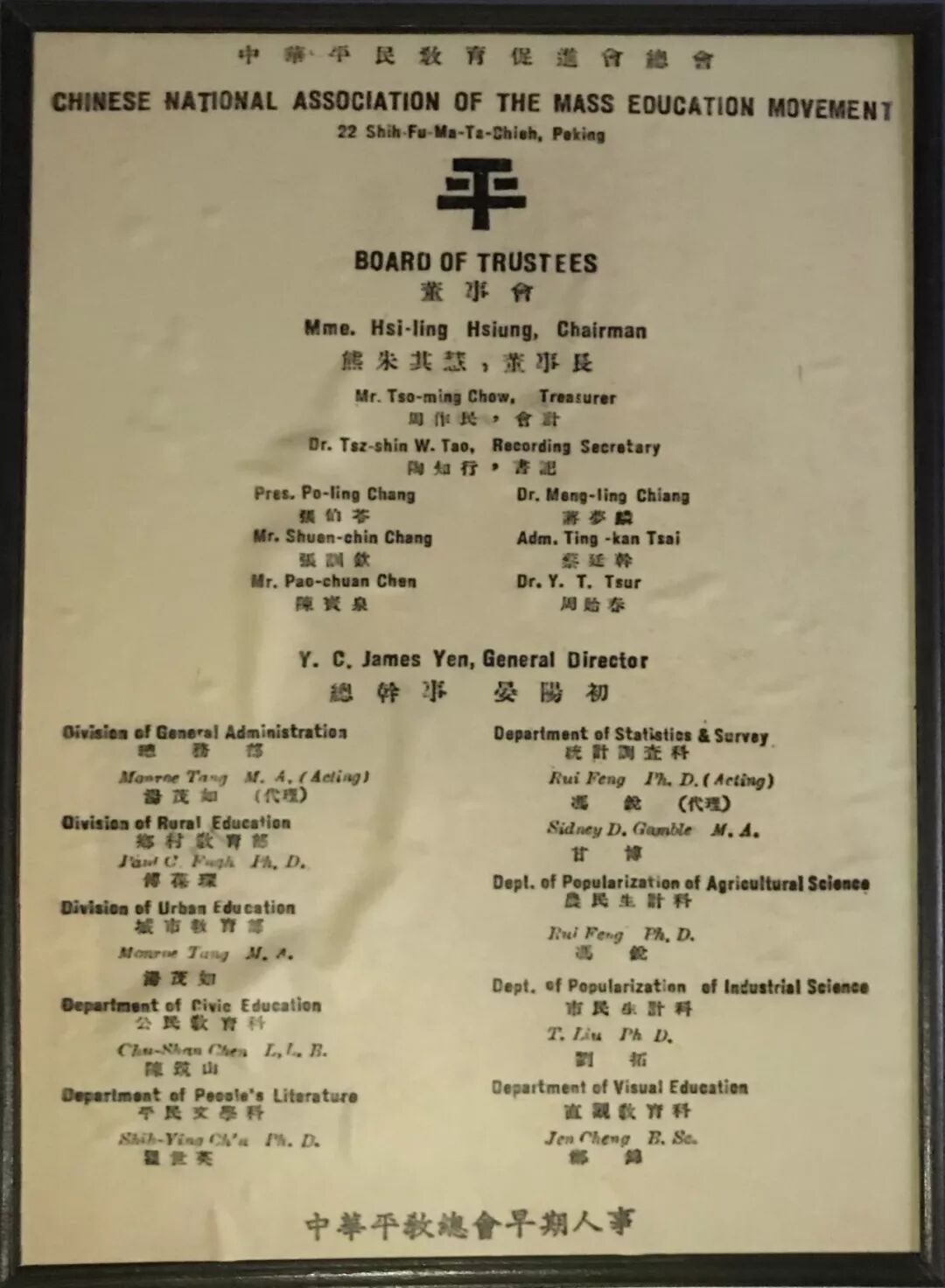 这就是晏阳初从二十世纪二十年代开始大力推广的平民教育,其中尤以定县实验而闻名。