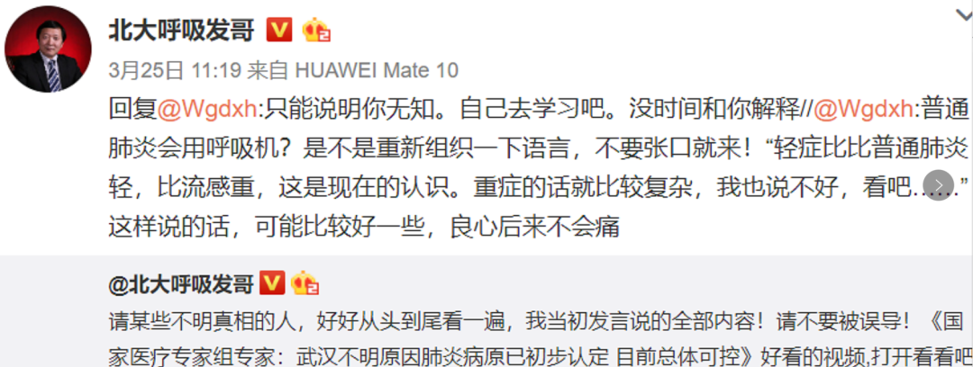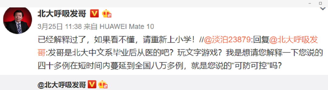 获得国家荣誉后,王广发在微博日渐活跃,频繁斥责侮辱网友质疑,态度急怒、骄狂: