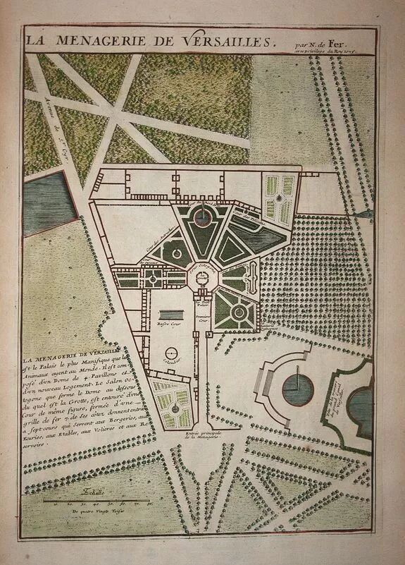 边沁没有说明他的设计方案是否受到勒沃(Le Vaux)设计的凡尔赛动物园的启发。这最早的动物园与一般的动物园不同。它的各个展览点不是散布在一个公园里(Loisel,104~107)。其中心是一个八角亭,第一层只有一个房间,是国王的沙龙。八角亭的一面是入口,其它各面开着大窗户,正对着七个关各种动物的铁笼。到边沁的时代,这种动物园已经消失了。但是,我们在全景敞视建筑方案中看到了类似的兴趣,即对个别观察、分门别类,以及空间分解组合的兴趣。