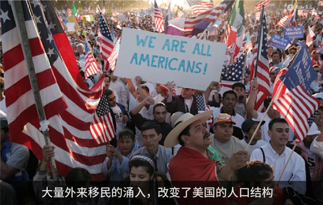 这样的思考方式,对实用主义者,实在是匪夷所思,甚至被认为是一种“阿Q式的精神胜利法”。但是清教徒却是这样思考的——如果上帝不给予任何好处(如生存、财富、地位),就不信仰上帝了,那他信仰的,不是上帝,而是好处。如果他因为有好处才信仰,那么他实际上是被外在物质所决定的,这样的人和动物几乎没有任何区别。如果他选择信仰上帝,是因为无条件地相信上帝是正确的,而不是因为上帝能给他好处,这就意味着他不再被任何物质条件所约束,那么,他的精神、灵魂是自由的。这种独特的精神气质,在信仰传统稀薄的地方,很难被理解。但是,如果不理解它,也就无法真正理解美国。罗素·柯克在《保守主义的精神》中指出,清教徒的基本理念是,在与上帝之约的基础上,自我立法,自我治理,只有全知全能全善的上帝才是主宰,祂赋予个体以自由意志,个体要去主宰、创造自己的命运。由此衍生出了清教徒保守主义的基本原则:·“珍爱上帝创造的社会传统”——上帝统治着人类社会的良知与道德,任何传统都是上帝创造的,它久经岁月的磨砺,主张审慎的、自发的改良,拒绝用顶层设计出来的乌托邦蓝图来改造社会。·“无私产,不自由”——每个人都必须通过自己的勤勉和创造荣耀上帝,由此获得的私有财产,是每个人自由的根基。·“主张差别和秩序”——尊重人的多样性,差异性以及人性的不完美,每个人只有在神明和法律面前是平等的,反对经济平等的“无阶级差别”的社会。·“自律即自由”——出于对上帝的敬畏,人在追求自由时,要警惕人性之恶,必须有所节制。保守主义的精神气质,最终在世俗层面体现为两点:以美国宪法为基石的政治制度,以及由此创造的经济奇迹。美国宪法,用一句话来概括其核心理念的话,就是“以野心对抗野心”,构建一个保障个体权利的平衡性政府。所谓平衡性,首先是防范多数穷人侵犯少数富人的财产权,用政治哲学的语言,就是“共和高于民主”——既防范暴君,也防范暴民,而防暴民甚于防暴君。其次,是防范富人利用权势,压榨穷人。美国宪法的起草者,古维纳尔·莫里斯说:“财富会腐蚀思想,助长权欲,上帝证明,这就是富人的趋势。”清教徒背景的美国国父们一致认为,只要国家制度设计得当,就能建成一个平衡性政府——各利益集团、各阶层互相制约,从而充分地保守上帝意志下的道德秩序。具有保守主义精神气质的清教徒,他们的财富观,用一句话概括,那就是“以勤勉和创造来荣耀上帝”——作为上帝的选民,财富是荣耀上帝的方式,而贫穷则是不可饶恕的罪孽,工作的意义不是为了挥霍,享乐,而是出于对上帝的信仰。这种清教伦理,才是美国经济崛起的根源。可见,美国奇迹的根源,不是三权分立、自由市场等政治经济制度,而是清教徒保守主义的独特精神气质。正如保守主义学者刘军宁老师在《保守主义》一书所描述的那样:“印象中,美国秩序是进化的、世俗的、科学的、现代的、民主的。事实是,美国秩序是保守的、宗教的、道德的、古老的、共和的——美虽新邦,其命惟旧。”保守主义精神造就了美国奇迹,但两大关键性事件的冲击,让保守主义精神在美国出现了大溃败:◎ 平权运动的兴起与全球化浪潮下外来移民的涌入,以清教徒为主体的基本盘受到冲击,美国人的国家认同开始被解构,“谁是美国人?”的答案越来越模糊。1988年,美墨之间有一场球赛,放眼望去,赛场几乎清一色的墨西哥国旗。当美国队出场时,全场观众朝他们扔石头。更让人意外的是,这场比赛的举办地点,不是墨西哥,而是美国的洛杉矶。一个挨打的球迷气愤地说:“在美国比赛,我竟然因为举一面美国国旗挨揍了,岂有此理!”这一荒诞事件,成为了美国国家认同遭到严重挑战的生动注脚。保守主义之父埃德蒙·柏克曾说:“去美洲殖民地的都是新教徒(清教徒),他们是异见者中的异见者,是新教徒中的新教徒。”这些异见者——300万“WASP”——“白人盎格鲁—撒克逊清教徒”,决定了美国人身份认同的核心,是美国的基本盘。随后,在19世纪的100年间,欧洲白人移民不断融入美国,尽管“WASP”被“WEP”取代——“盎格鲁—萨克逊”被“欧裔”取代,但是“白人”和“清教信仰”却没有变,“清教伦理”对“欧裔”的同化成功了。历史的转折点,是20世纪60年代的平权运动,“美国人”的身份认同第一次遭到重大挑战,“清教伦理”对黑人的同化失败了。此后,随着全球化和外来移民的不断涌入,清教伦理对墨西哥裔、拉丁裔、穆斯林、亚裔等外来族裔的同化也都失败了。政治学者亨廷顿在《谁是美国人》一书中举了一个形象的例子——美国就好比一锅番茄汤,最初的这锅汤,就是300万“WASP”熬的,后来的欧洲移民就好比是各种蔬菜和作料,尽管他们让这锅番茄汤变了些味儿,但是基本底色仍然没有改变,但是对黑人等族裔同化的失败,相当于直接把汤倒掉,变成了层次分明的沙拉酱。保守主义精神的基本盘——美国清教徒,在平权运动和外来移民的冲击下开始瓦解,于是,美国的身份认同出现重大危机——“谁是美国人?”这个问题竟然变得异常敏感而又尖锐。华人经济学家杨小凯曾说:“信仰是制度的第一因。”也就是说,再先进、再完美的制度,其活力的源泉都是文化与信仰,如果文化与信仰丧失了,那么任何制度都会变成了失去灵魂的僵尸。随着非洲