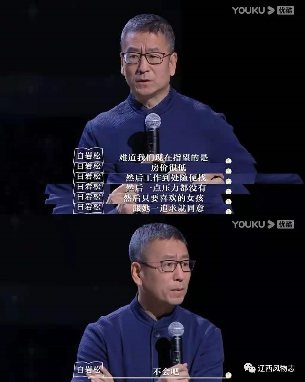 在最近播出的一档节目中,白老师大言不惭的对青年观众说道:"难道你希望现在房价很低?希望工作一点压力没有?希望你追求的女孩一追求她就同意?不会吧?"白老湿的这套说辞是刻意用"情真意切"的语调娓娓道来的,而且还一脸真诚毫无违和。只是这样一来就造成了一种反差,就像一个卖手机的人,特别真诚的劝你,让你把"肾"卖了,然后买他的手机。真是无耻!这种货色,仅凭紧皱眉头摆出一副便秘的样就可以堂而皇之的称之为"社会良心"了,真是匪夷所思!如果不是被迫暴露,恐怕仍有很多人会对电视里的白老师顶礼膜拜,为之鼓掌叫好。当然,从侧面可以反证出"躺平"的妙处,就像潮水褪去可以看见谁没穿裤衩一样,躺平后可以认清谁是镰刀,谁是镰刀的帮凶。