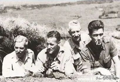 美军顾问团司令弗兰克•多恩(左二)在怒江前线视察阵地。