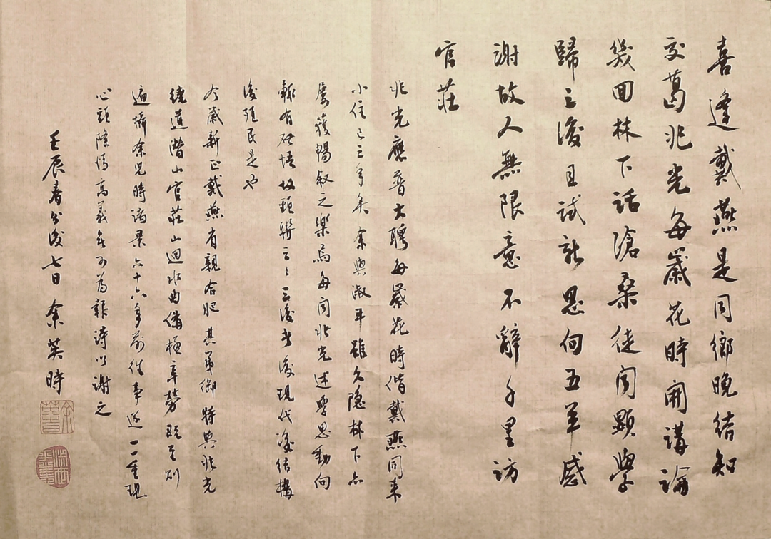 可是没想到,收到慧芬消息才几小时,和余先生同住普镇的周质平教授,就来电告诉我余先生睡梦中仙逝。乍一听到万分震惊,记得不久前,在电话交谈中,还能感到余先生思路不仅清醒而且有活力,肯定能像大家期待的"岂止于米,相期以茶",没想到会这么快离世。一时间不知道该做什么该说什么,八月五号这一整天里,人都仿佛处在失重状态。昏昏沉沉中,下意识地翻看余先生历年给我的信件、照片、文章,还有好些幅字,回想这十几年和余先生交往的种种情景,直到夜深人静才回过神,不禁悲从中来。