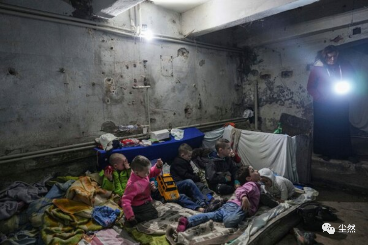 乌克兰马里乌波尔,孩子们在防空洞玩耍
