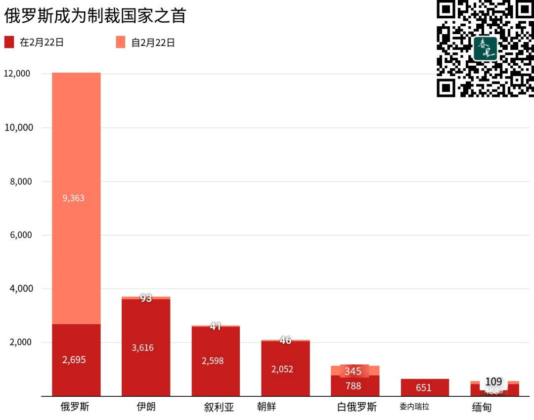 截至9月27日,俄罗斯一共受到12058项制裁,打破历史记录,比其他受制裁所有国家所有项目的总和还要多: