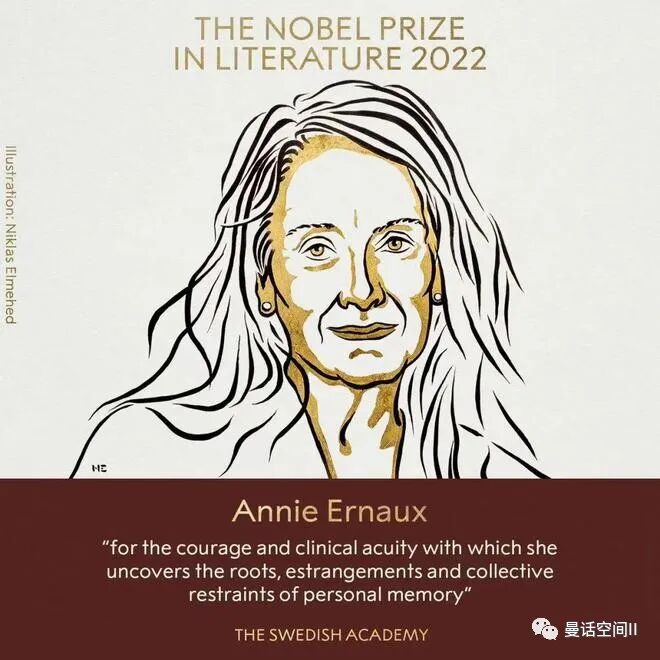 10月6日,诺贝尔文学奖揭晓,瑞典学院宣布法国作家安妮·艾尔诺摘得桂冠,其获奖理由是:"因为她以勇气和高度敏锐度揭示了个人记忆的根源、疏远和集体限制"。