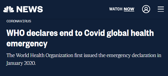 疫情终于官宣结束了。世界卫生组织总干事谭德赛周五表示:"昨天,突发事件委员会举行了第15次会议,并建议我宣布这一国际关注的紧急状态终结。我接受了这一建议。因此,我怀着极大的希望,宣布Covid-19作为全球公共卫生紧急状态结束。"很多媒体都转发了这个消息。