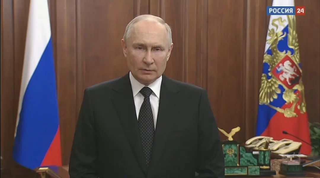 2023年6月24日,俄罗斯总统普京发表电视讲话。