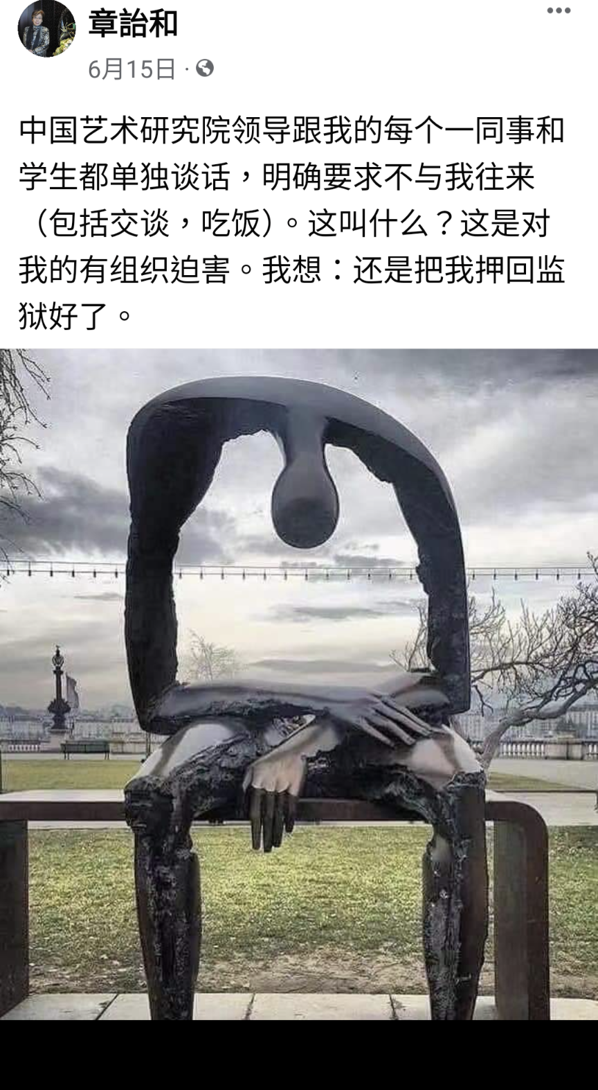 想起了應該這月初吧,章詒和先生突然出現在臉書上,原來是在中國境內的平台她已經被封了號,章老偶爾簡短的po文陸續講述著她這陣子的遭遇。