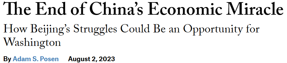 本文原题"The End of China's Economic Miracle",由美国《外交事务》杂志网站发布于2023年8月2日。
