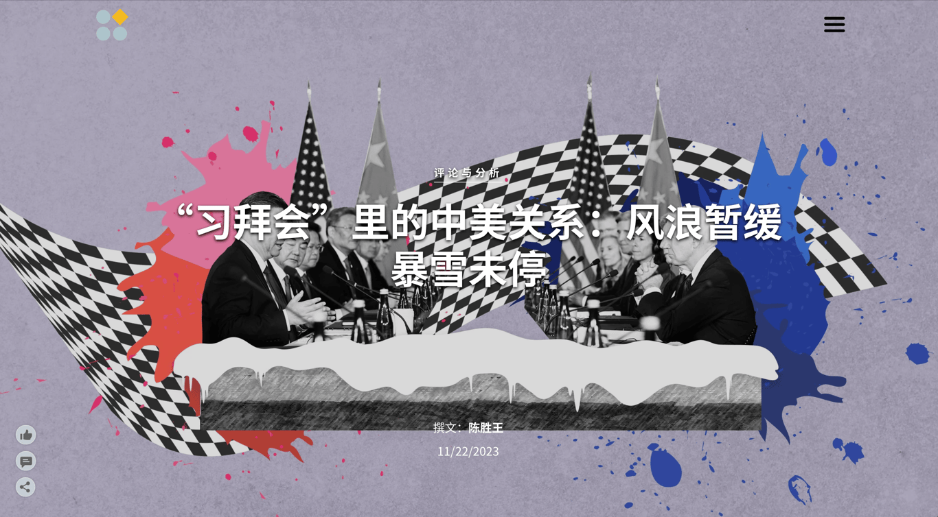 中国官媒也在习拜会前夕,突然调转了一直以来的反美宣传口径。谈论美国的语气不再是指骂和叫嚣,而是转变成对中美往昔情感的重温回忆。新华社十一月初发文,回顾习近平与艾奥瓦州农民开拖拉机,以及重访当年在美住所的场面,指"主席对美国普通民众的感情历久弥新"。此外还接连发布多篇评论,论述中美关系如何重返正轨。党报《人民日报》十月末发表的署名"钟声"的官方评论,也一改以往痛批美国基调,转而讲起了两国关系要"稳下来、好起来",论调之柔软是该署名近年罕见。这种关系解冻的风向突变之快、步调之大,以至于网民都戏谑,胡锡进、周小平、司马南这些反美网红们,怕是快要没活儿干了。