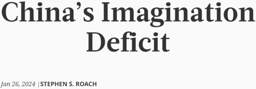 (作者曾任摩根士丹利首席经济学家,目前是耶鲁大学法学院蔡中曾中国中心高级研究员。本文原题"China's Imagination Deficit",由报业辛迪加发布于2024年1月26日。译者听桥,对机器形成的初步译文有校阅和多分段。)