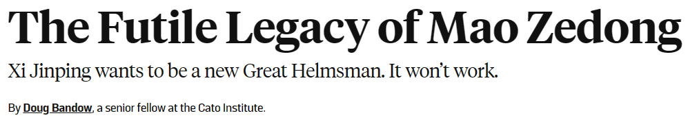 (作者是美国加图研究所高级研究员。本文原题“The Futile Legacy of Mao Zedong” ,由美国《外交政策》网站发布于2024年1月19日。译者听桥,对原文有多分段,对机器提供的初步译文有校阅。)