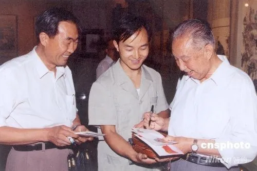 1995年8月3日,华国锋在抗日战争胜利五十周年美术作品展上为观众签名(毛建军 摄) 2001年1月11日上午,我第四次来到西黄城根南街9号院。来的一路上,我就琢磨,与华老聊了这么多次,还没涉及我最感兴趣的事——粉碎“四人帮”。这次一定要提出来。