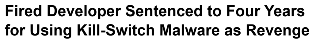 55岁的华人程序员David Lu(卢大卫,音译),因为预感要被炒鱿鱼,提前在系统里植入恶意代码,被裁当天直接把老东家的全球服务器整瘫痪了,最终被判处4年监禁+3年监外监管!