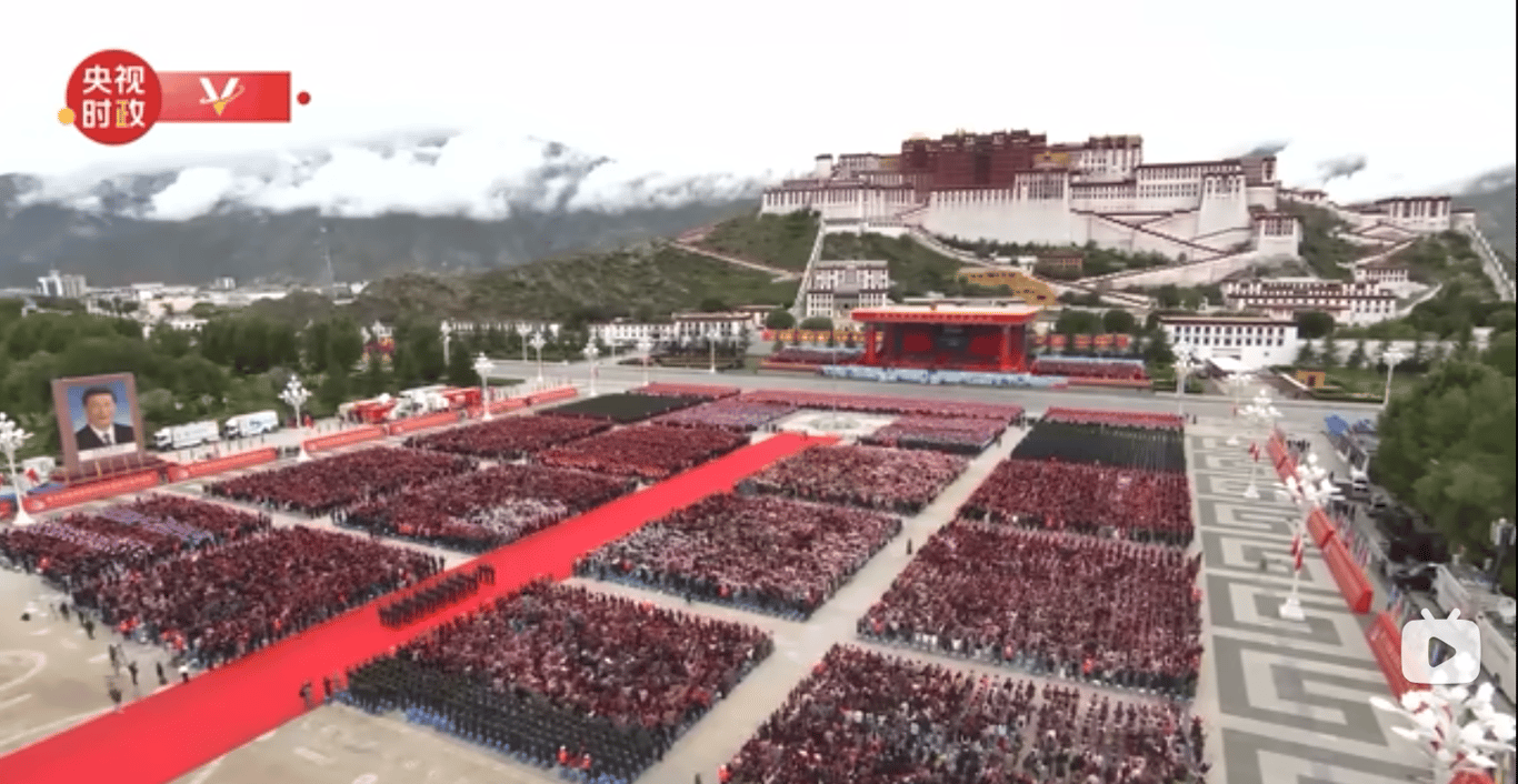 21日上午,习近平出席了庆典活动。庆典活动在布达拉宫广场举行。现场立有一幅习近平的巨幅画像。感到很诧异。一搜索,才知道4年前,2021年8月19日西藏自治区和平解放70周年庆典时,习近平的画像就立在广场了,据报道有三至四层楼高。广场的另一面还立有一幅画像,集毛泽东、邓小平、江泽民、胡锦涛和习近平头像一起。这肯定会伤害藏人的感情。就好比如果日本统治了中国,将天皇的画像挂在天安门城楼。