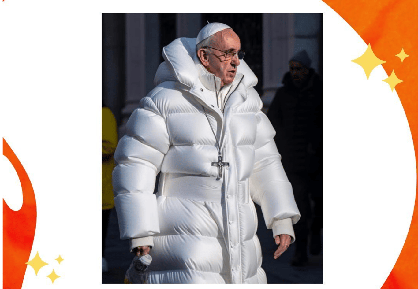 我想起了2023年3月,讓我印象最深的一條新聞:教宗方濟各穿著一件白色Balenciaga羽絨外套出現在互聯網上。我被這張照片逗得發笑:教宗表情淡定的走在街上。不得不提,那是一件漂亮的衣服,蓬鬆且有質感的面料與他平日穿的樸素長袍形成鮮明對比。
