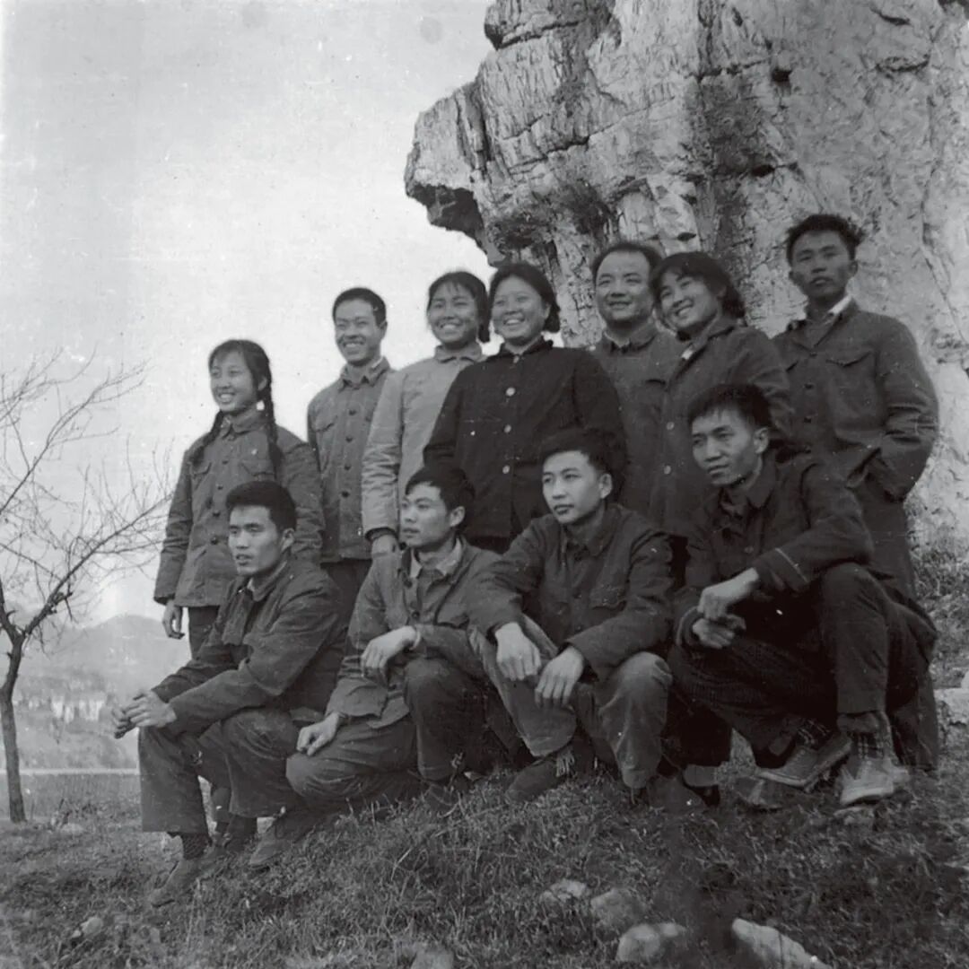 ▲1976年,钱理群(后排右三)与年轻朋友在安顺师范学校宿舍前面斜坡之上的一块怪石下留影 图/受访者提供