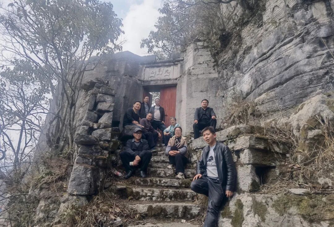 ▲《文化安顺》 成员合影,后排:洪惊涛、张厚林;第二排:陈文杰、杜应国与地方文化学者李晓、伍永红;前排:作家杨汝祥与轿子山镇两名工作人员 图/受访者提供