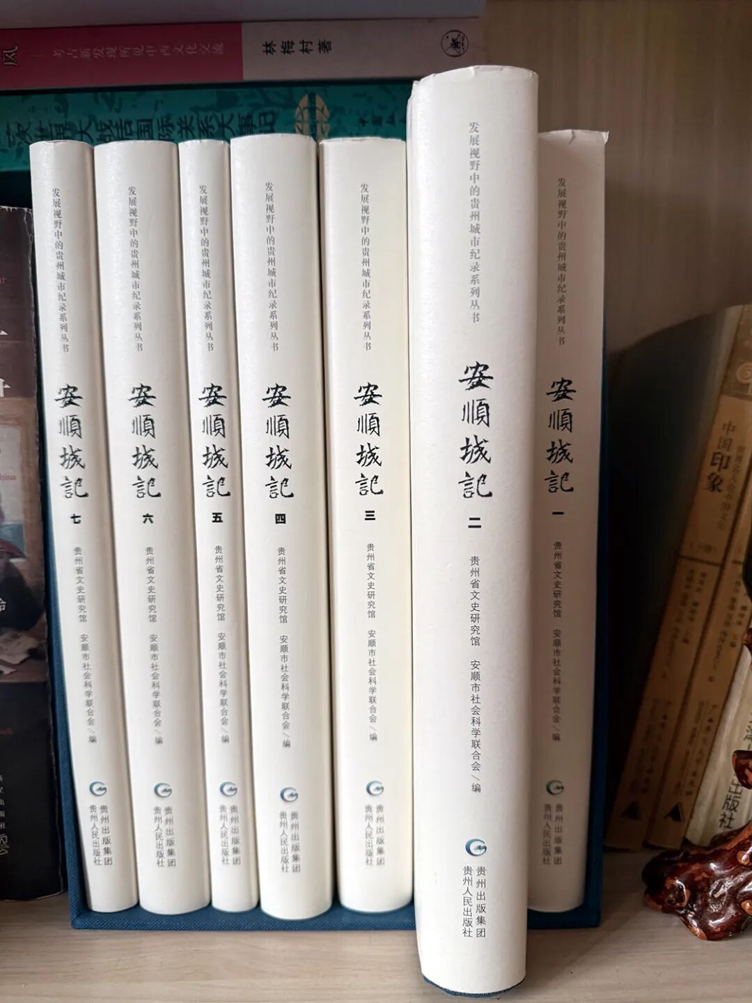 ▲由钱理群、戴明贤、袁本良、顾久主编,杜应国总纂,六十余人花费多年心血编撰的七卷本 《安顺城记》 图/南方人物周刊记者 邓郁