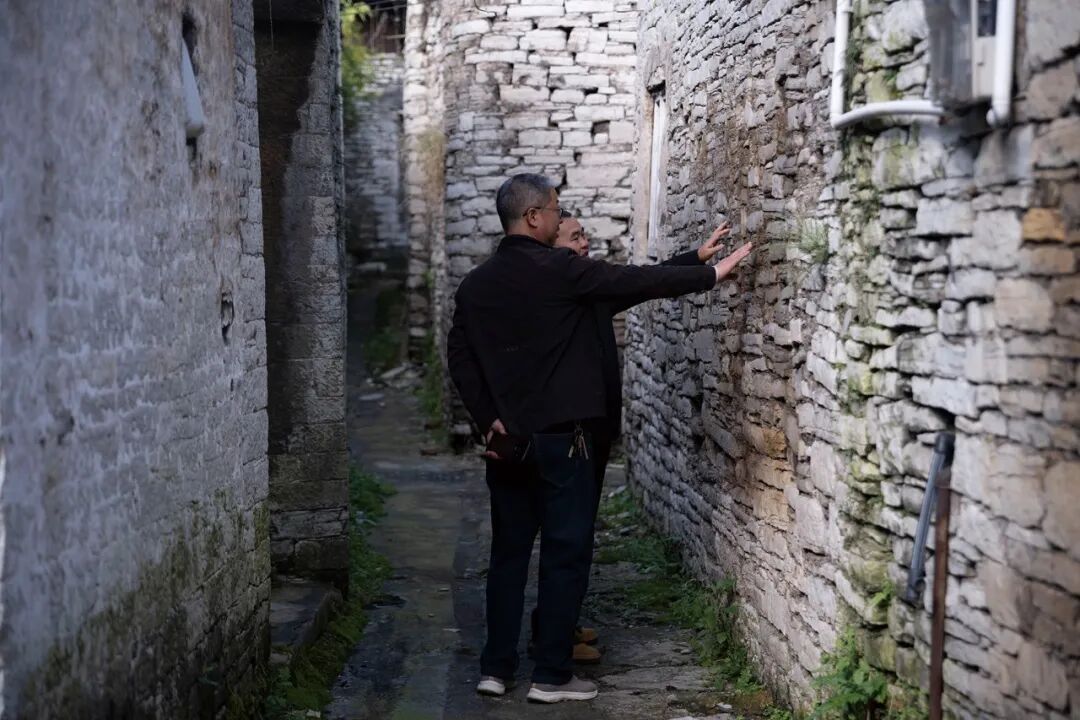 ▲2025年11月15日,《文化安顺》 编辑张厚林 (左) 和朱发猛 (右) 带本刊记者探访安顺九溪村 图/南方人物周刊记者 大食