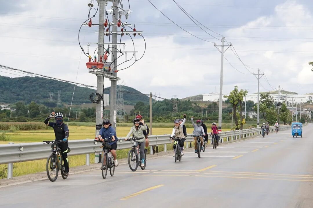 ▲2025年10月9日,群岛大学组织的重走西南联大西迁路骑行团,在离开曲靖前往马龙的248国道上 图/受访者提供