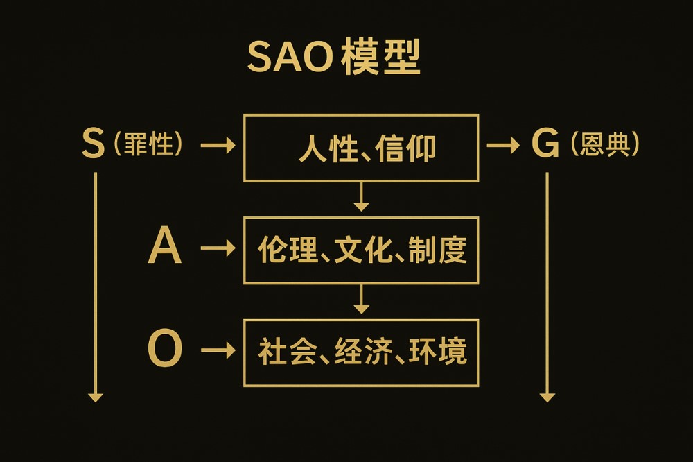 恩典进入人心(S),人心塑造制度(A),制度形成秩序(O),而秩序反过来保护恩典进入下一轮。