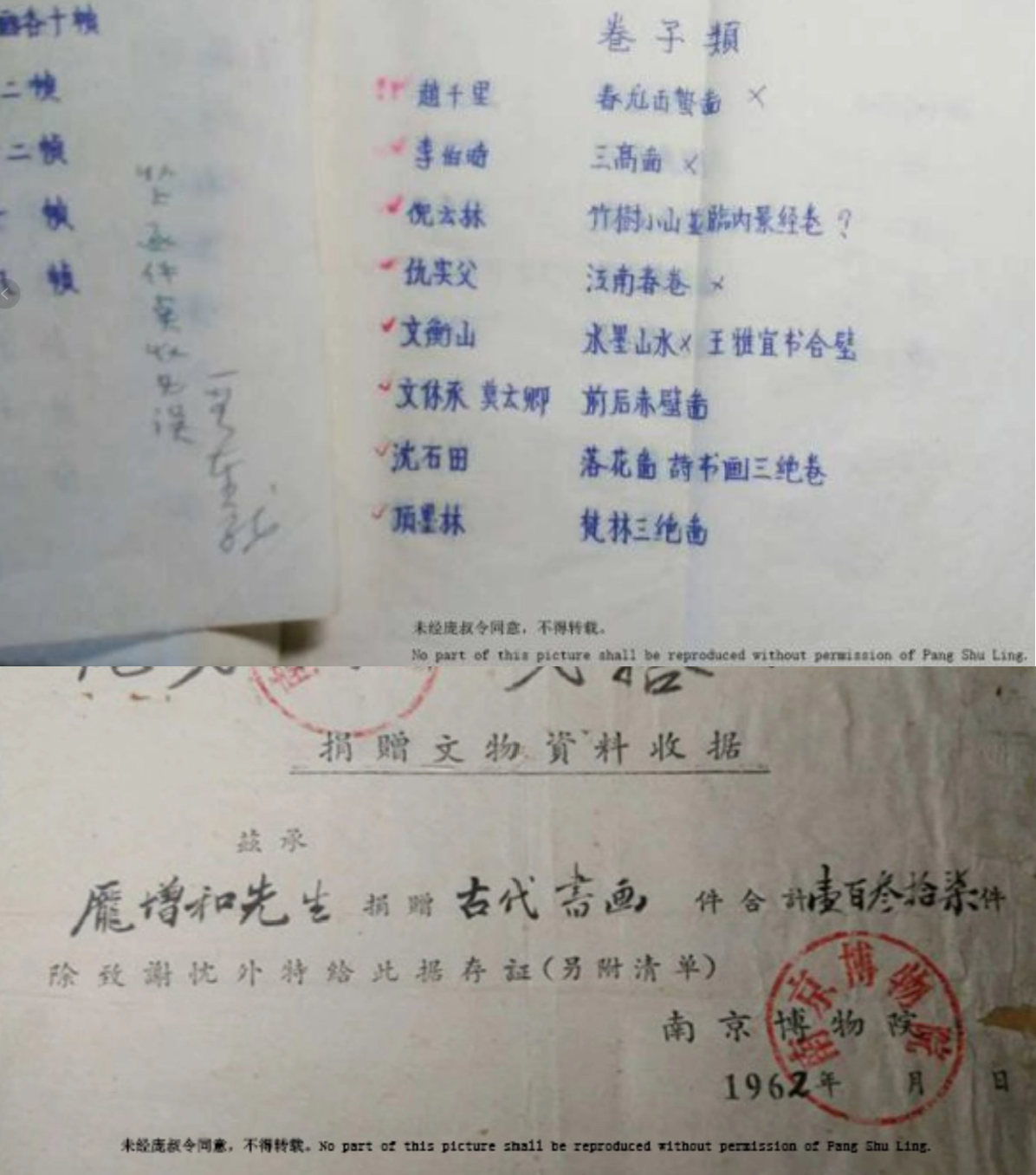 1953年、1959年,庞增和分别向苏州博物馆捐赠文物39种,其中书画34种。