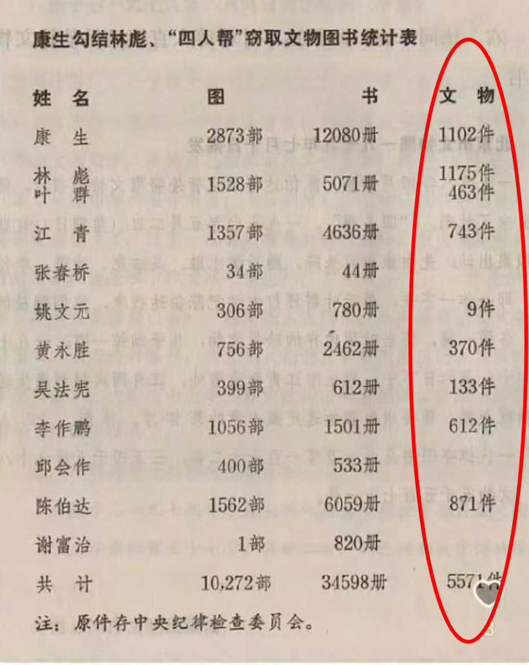 作为教员时代政治高层为数不多的行家里手,康生当然精通书画文物的历史价值——从守护实体文物,到理解其背后的历史层积、情感联结与文化多样性,最终指向对文明延续的共同责任。但恰恰相反,康生自恃胆大艺高,深谙体制玄机,趁文革动乱之机,用极其冷酷的政治手腕,开启了特权染指文物的恶劣先例。康生的文艺天赋成为他精准掠夺文物的“利器”,他深知哪些藏品是孤品、哪些文物具稀缺价值,权力通天的他通过“借而不还”、指使抄家、暗示奉送等卑劣手段,疯狂窃取公私文物。据考证,从1966~1972年,康生窃取的图书就多达12080册、文物1102件,其中不乏世存仅数件的绝世珍品。