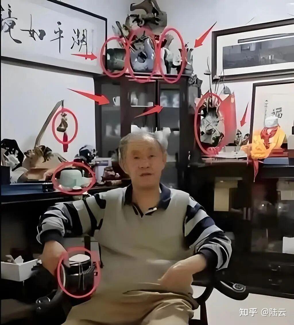 一位八旬老人坐在黄花梨太师椅上,背后琳琅满目的古玩字画几乎要从照片中溢出,这竟是一位曾声称“不收藏、不鉴定、不交易”的博物馆前院长的书房。