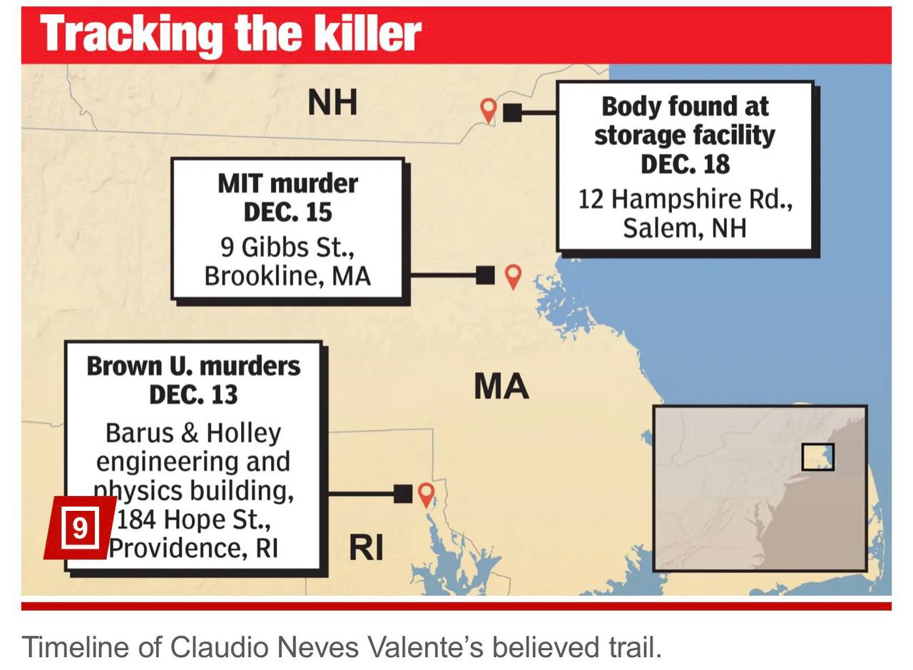 随之浮出水面的,是一条冷静而老练的作案路径:从波士顿租车,前往布朗校园作案;返回波士顿,进入MIT教授公寓;行凶后1小时内,就转移到新罕布什尔州的储物仓库,这是他11月就开始租下的地盘。