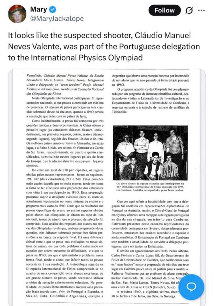 Claudio1994年以葡萄牙物理奥赛第三名身份打入国家队,成为国际物理奥赛选手。与MIT遇害教授同为里斯本顶级学府Instituto Superior Técnico(IST)校友,都于1995到2000年期间在该校同一专业学习。不同的是,2000年Claudio被IST开除,而Luno的事业从IST腾飞。但也是那一年,Claudio拿到布朗大学物理PhD学生offer,不过于2001年中断学业,并在2003年退学。枪击地点,正是其当年在布朗活动最频繁的教学楼。