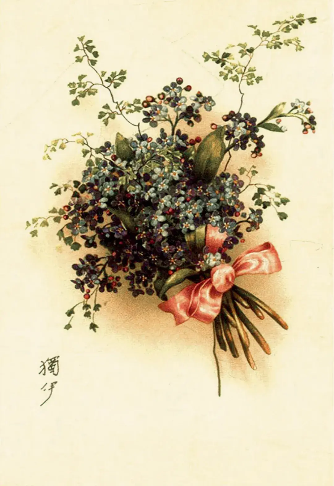 瞿独伊一直保存着父母1930年8月1日回国途中从柏林寄给她的一张明信片,上面印有一束蓝色勿忘我花,正面用中文写着“独伊”,背面用俄文写着“送给独伊”,落款是“妈妈”,但瞿独伊看得出,中俄文都是瞿秋白的笔迹。